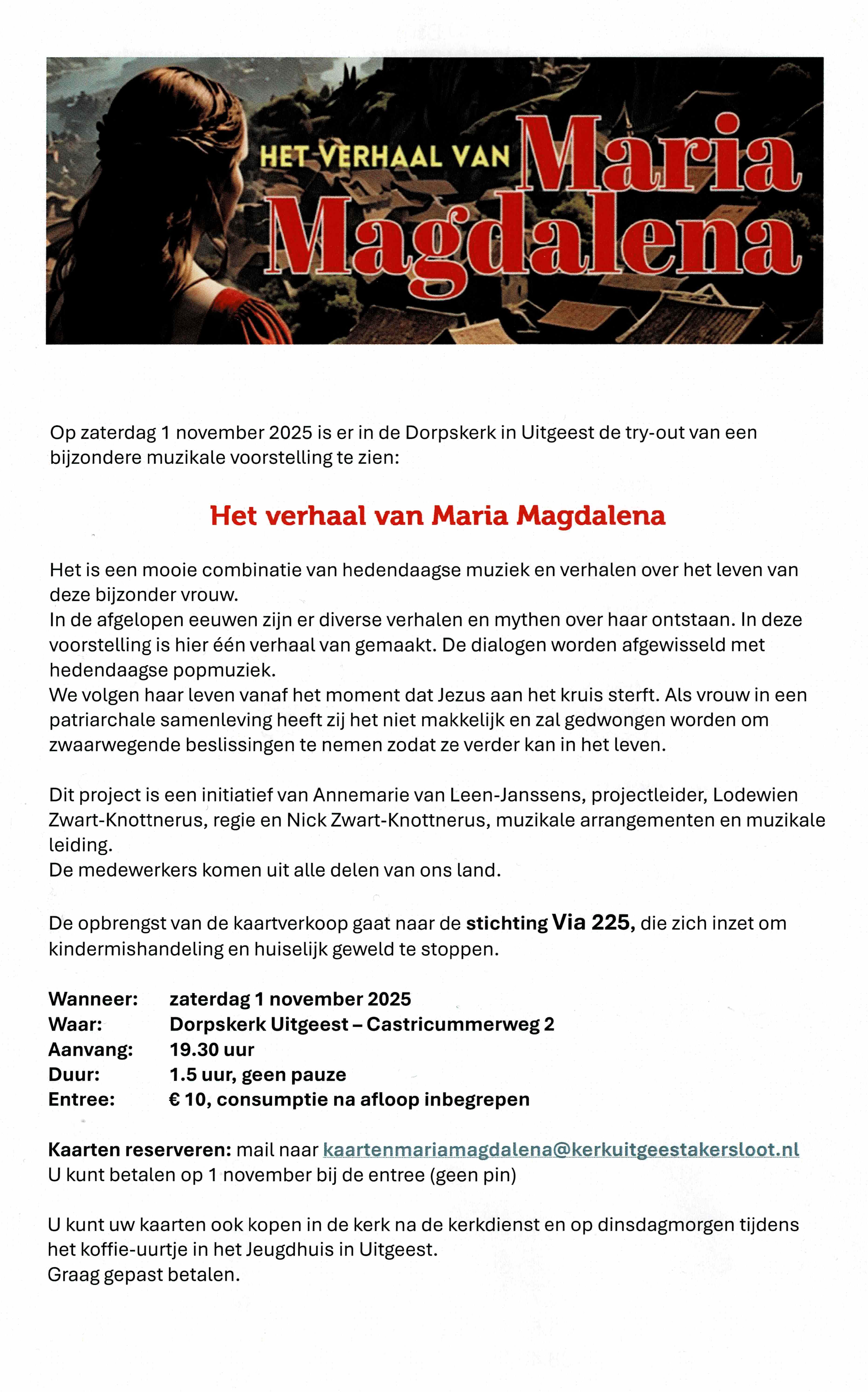 Het is ook verstandig om de Nieuwsbrief met het mailadres nieuwsbrief@kerkuitgeestakersloot.nl in uw contacten te zetten. Dan laat uw mailsysteem de Nieuwsbrief zeker door.